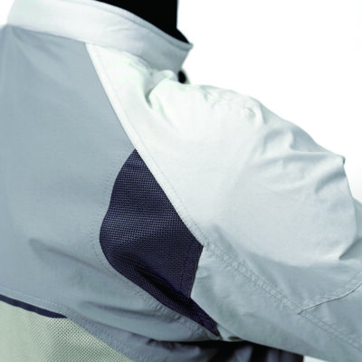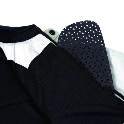 ◦通気性に優れた軽量プロテクターを肩、肘、背中、胸に標準装備。