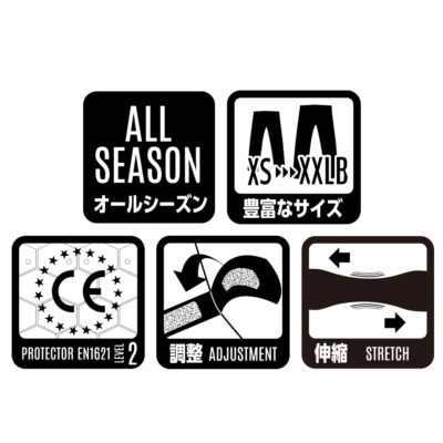 ◦腰部と膝にCE規格準拠のプロテクターを標準装備。