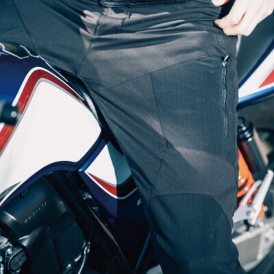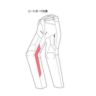 ◦膝上からふくらはぎにかけて断熱素材を内蔵しフレームやエンジンの熱からライダーを保護。