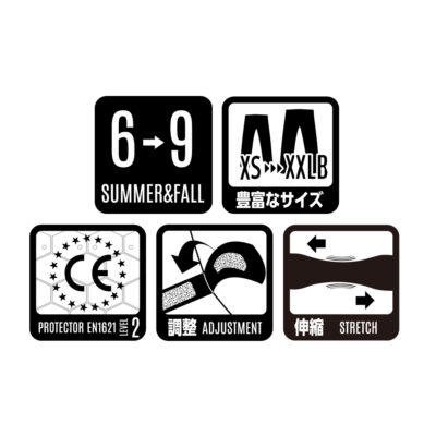 ◦腰部と膝にCE規格準拠のプロテクターを標準装備。