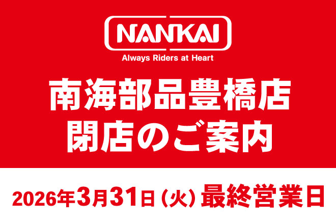 TOP ニュース NEWS 南海部品からのお知らせ ARCHIVE 選択してください すべて 2026年2月 2026年1月 2025年12月 2025年11月 2025年10月 2025年9月 2025年8月 2025年7月 2025年6月 2025年5月 2025年4月 2025年3月 2025年2月 2025年1月 2024年12月 2024年11月 2024年10月 2024年9月 2024年8月 2024年7月 2024年6月 2024年5月 2024年4月 2024年3月 2024年2月 2024年1月 2023年12月 2023年11月 2023年10月 2023年9月 2023年8月 2023年7月 2023年4月 2023年3月 2023年2月 企業ニュース 2026.02.01 南海部品 豊橋店 閉店のお知らせ 企業ニュース 2026.01.16 2026 年度ロードレース選手権参戦のご案内 企業ニュース 2025.12.25 オートバイチーム共同プロジェクトを始動 及び ライダー募集 企業ニュース 2025.08.30 南海部品NSC企画 2025年9月のOFF 企業ニュース 2025.08.29 南海部品 淡路店 閉店のお知らせ 企業ニュース 2025.04.28 佐野優人選手レースレポート 企業ニュース 2025.04.28 小川友幸選手レースレポート 企業ニュース 2025.04.28 NANKAI サポートライダー <レースレポート> 123» CATEGORY カテゴリー すべて 企業ニュース レースレポート お知らせ イベント情報 店舗ニュース ARCHIVE アーカイブ 選択してください すべて 2026年2月 2026年1月 2025年12月 2025年11月 2025年10月 2025年9月 2025年8月 2025年7月 2025年6月 2025年5月 2025年4月 2025年3月 2025年2月 2025年1月 2024年12月 2024年11月 2024年10月 2024年9月 2024年8月 2024年7月 2024年6月 2024年5月 2024年4月 2024年3月 2024年2月 2024年1月 2023年12月 2023年11月 2023年10月 2023年9月 2023年8月 2023年7月 2023年4月 2023年3月 2023年2月