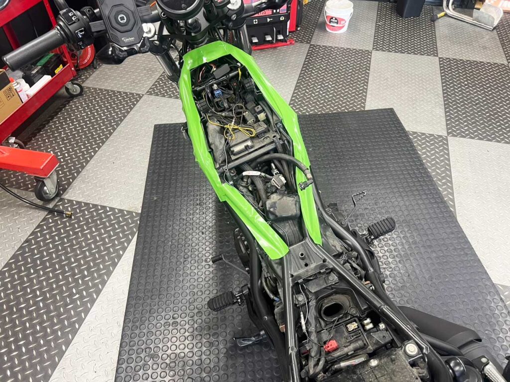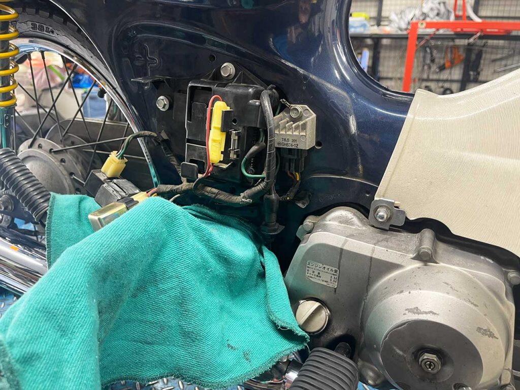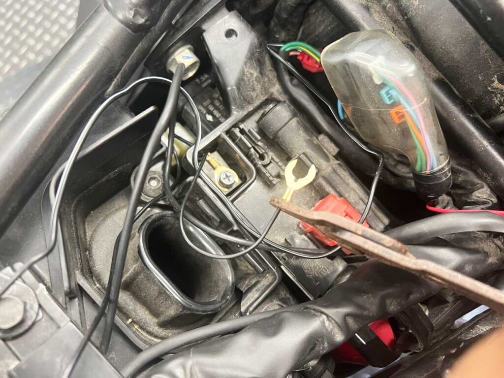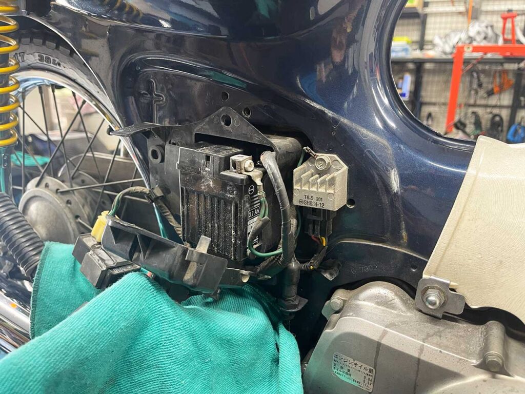 タンクを外しましたら一番最適な配線のルートを確立していきます。