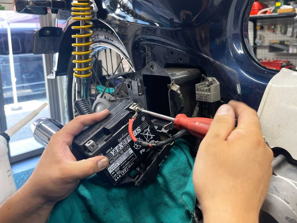 バッテリーにアクセスするため、外装パーツやカバーを取り外します。