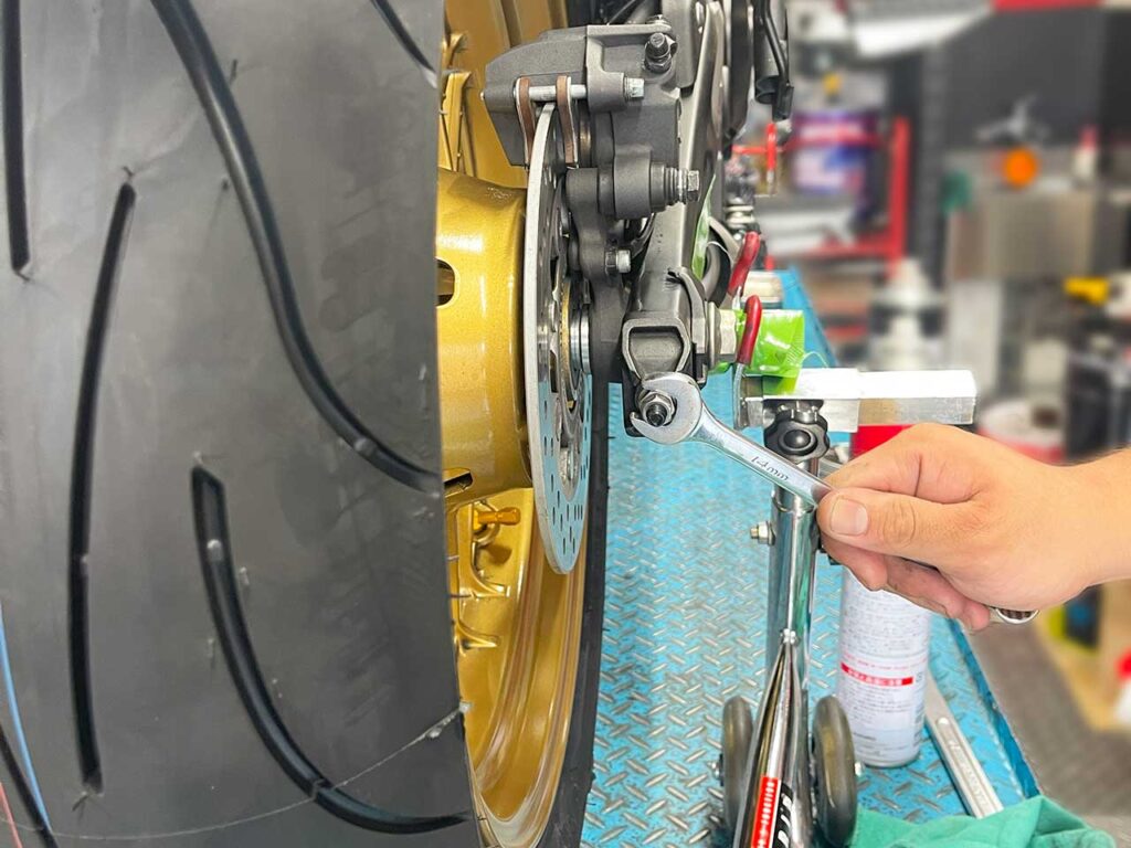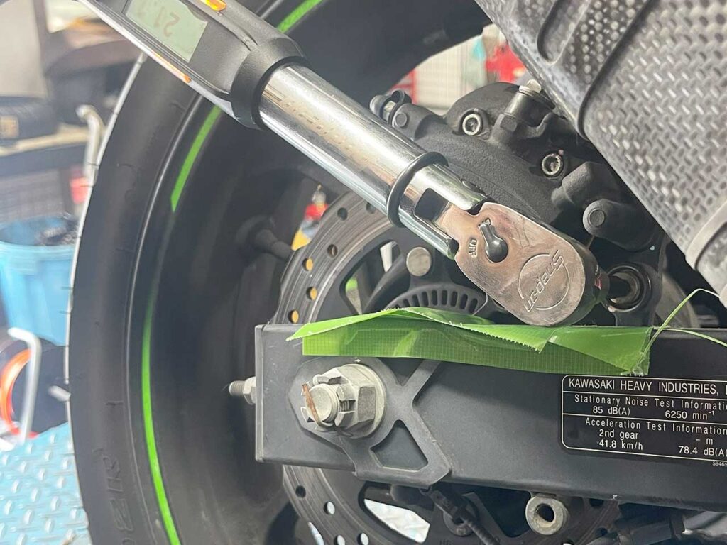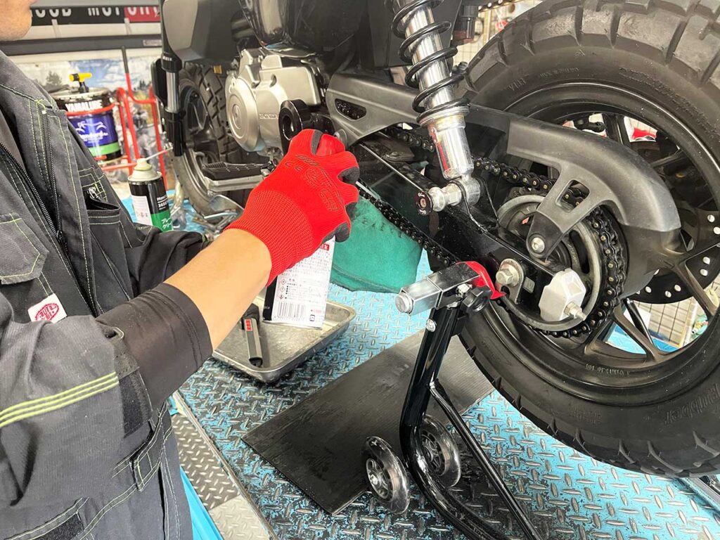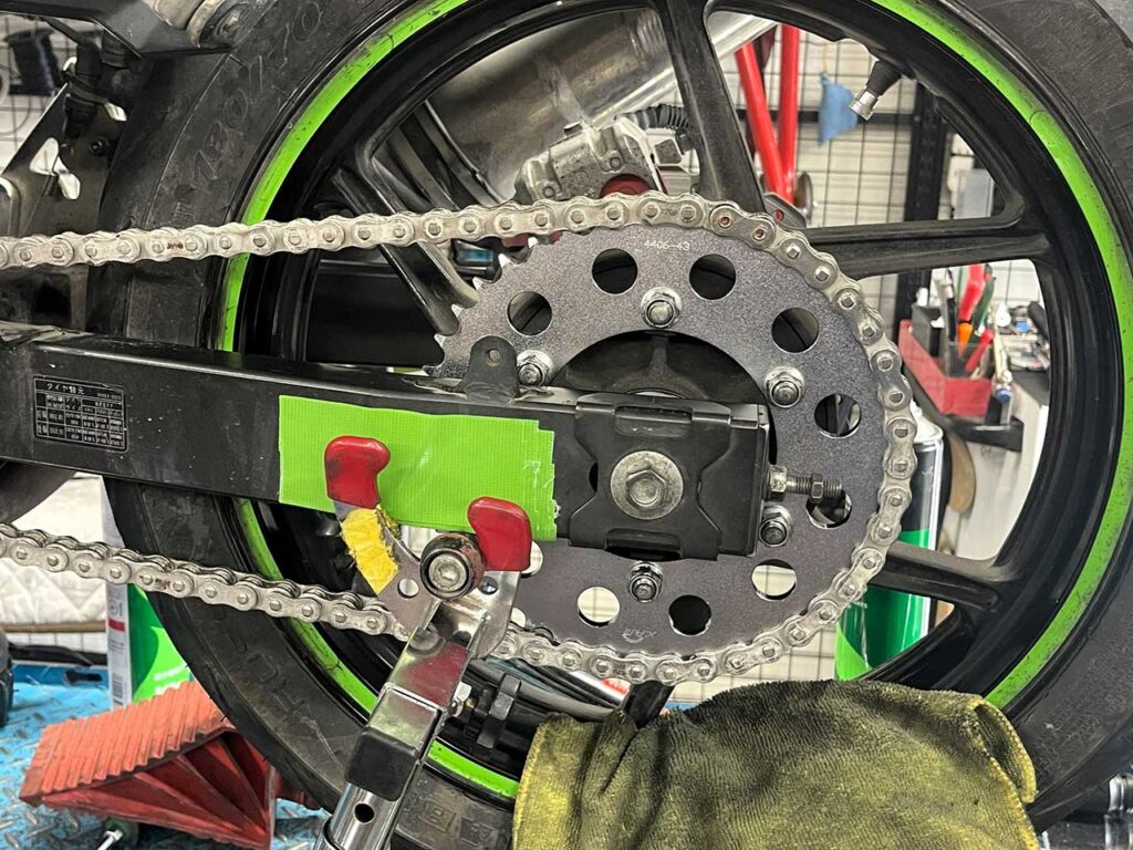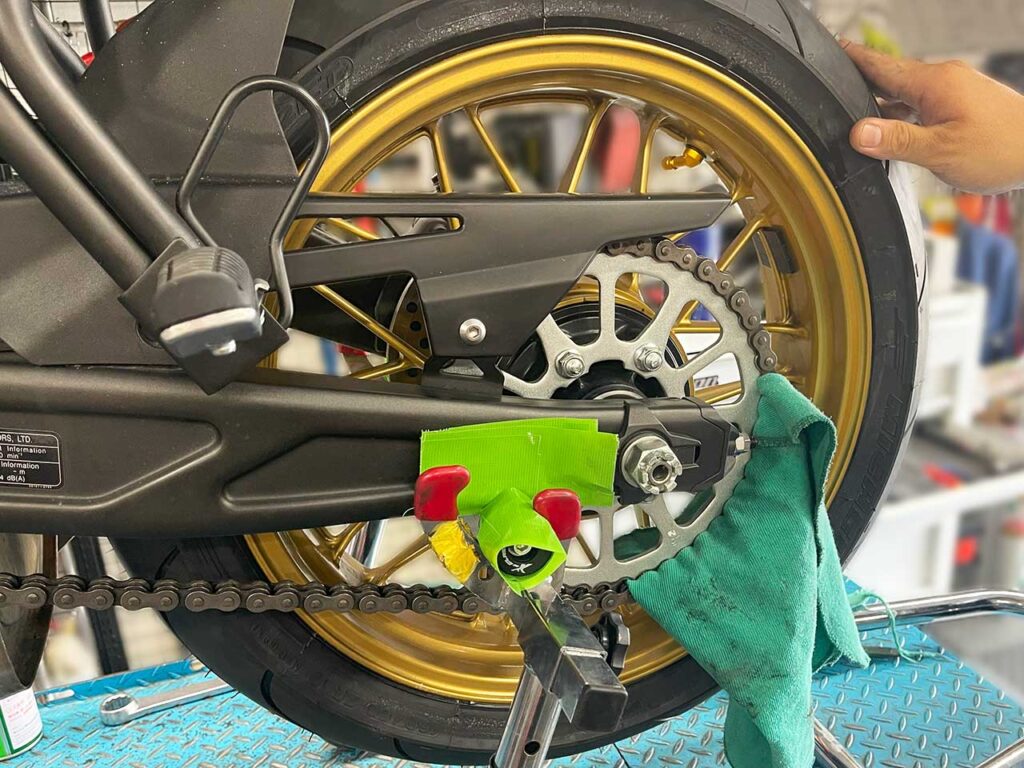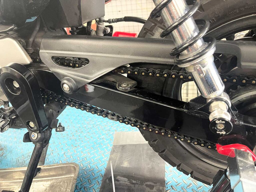 外していたパーツを装着後チェーンの遊び調整をいたします。