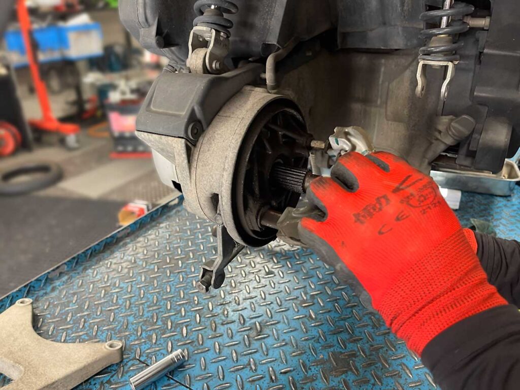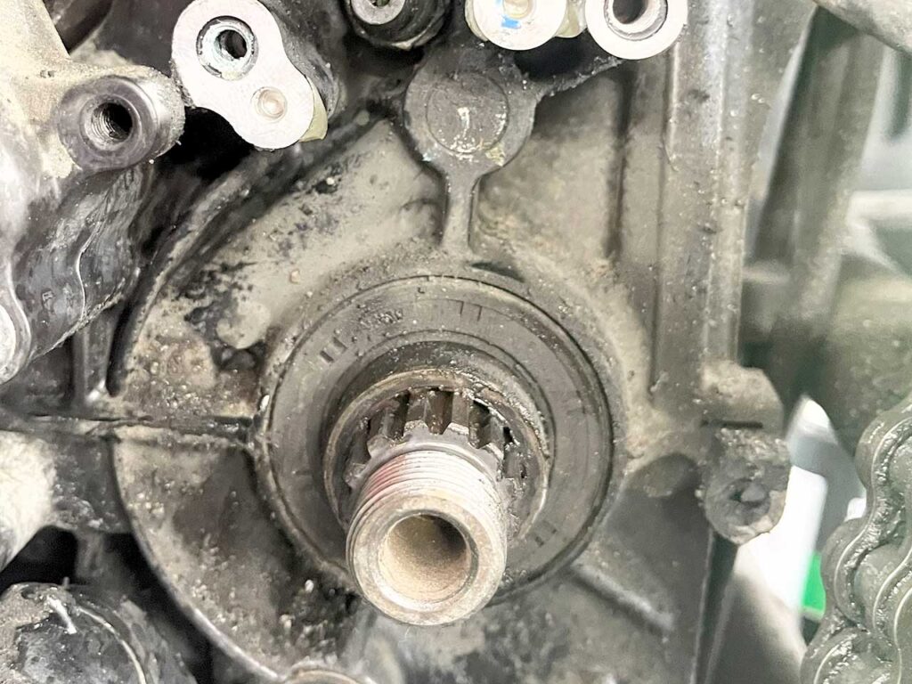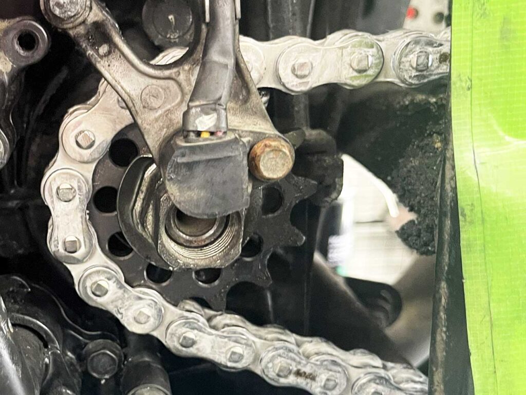 シールチェーンをカットし、新しいチェーンを車体に取り付ける前に、前後スプロケットの交換作業を行います。