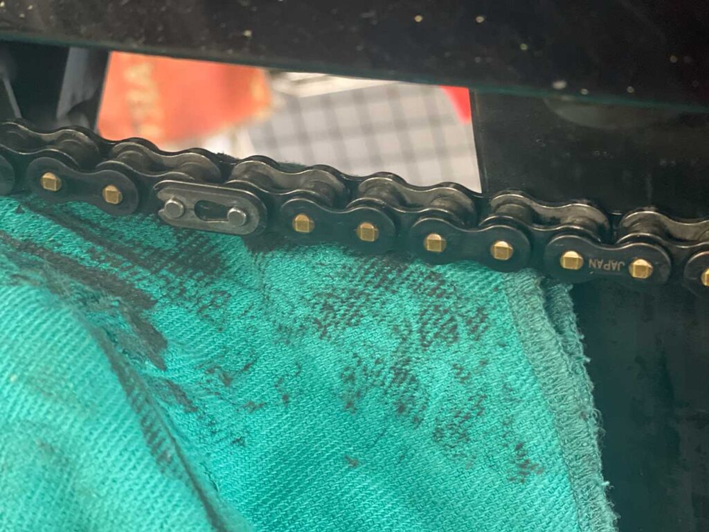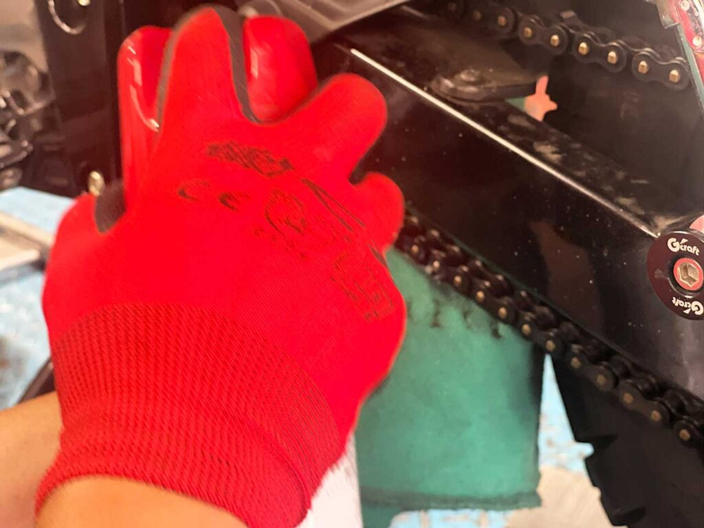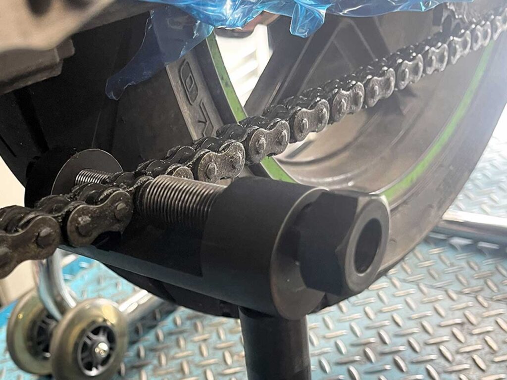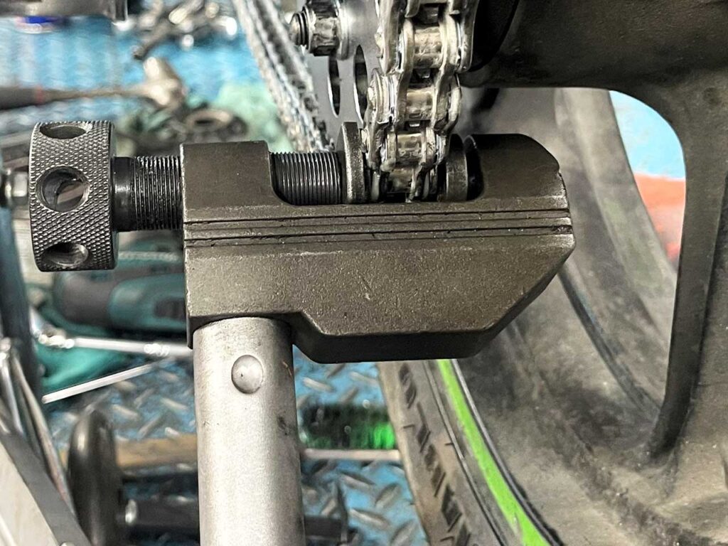 新品チェーンは、1000km程度走行したらチェーンの張りを確認し、必要ならばチェーン調整を行ないます。