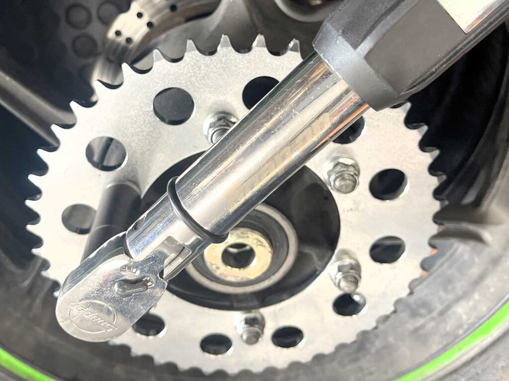 清掃後きれいになりましたら新しいドリブンスプロケットを取付けます。
