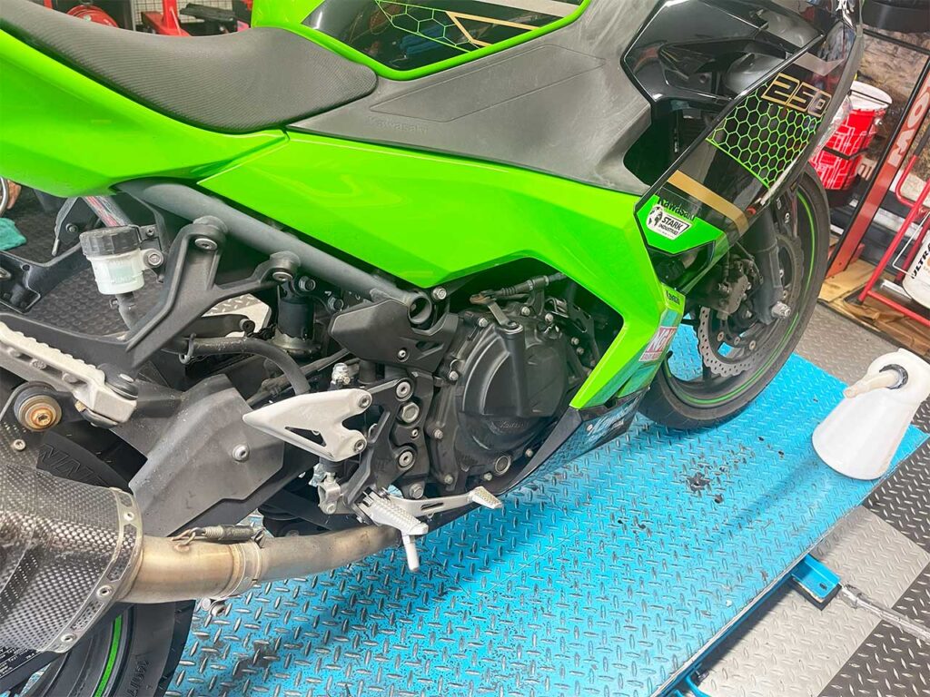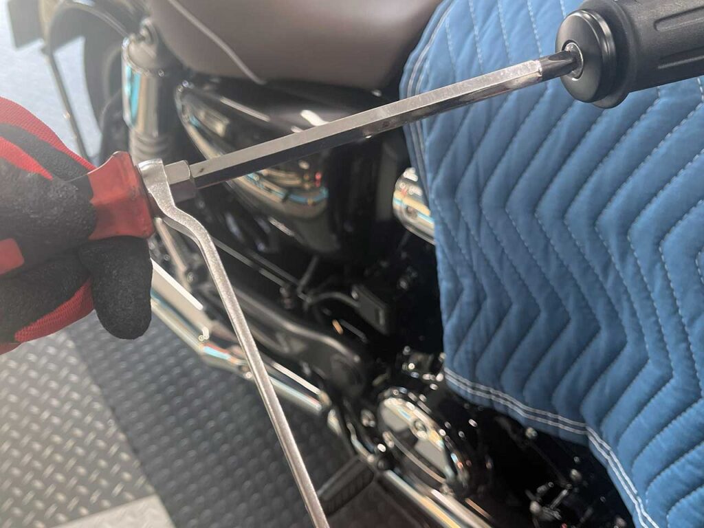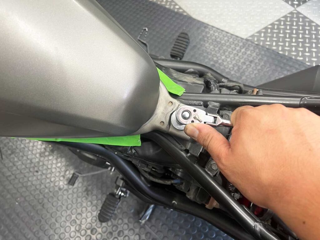 ドライブスプロケットを交換する際、シフトチェンジペダルの脱着が必要になります。