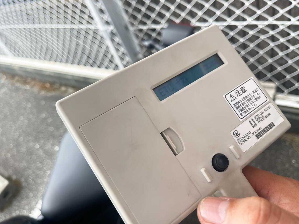 バッテリーの交換が完了いたしましたら、まずテスターを使用して電圧が適正であるかを確認いたします。