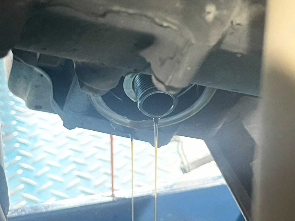 ドレンボルトの下に廃油トレイを設置し、古いオイルを抜きます。
