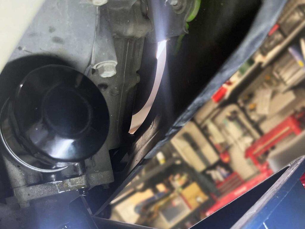 その後、フィルター周辺に付着したエンジンオイルをパーツクリーナーで洗浄いたします。