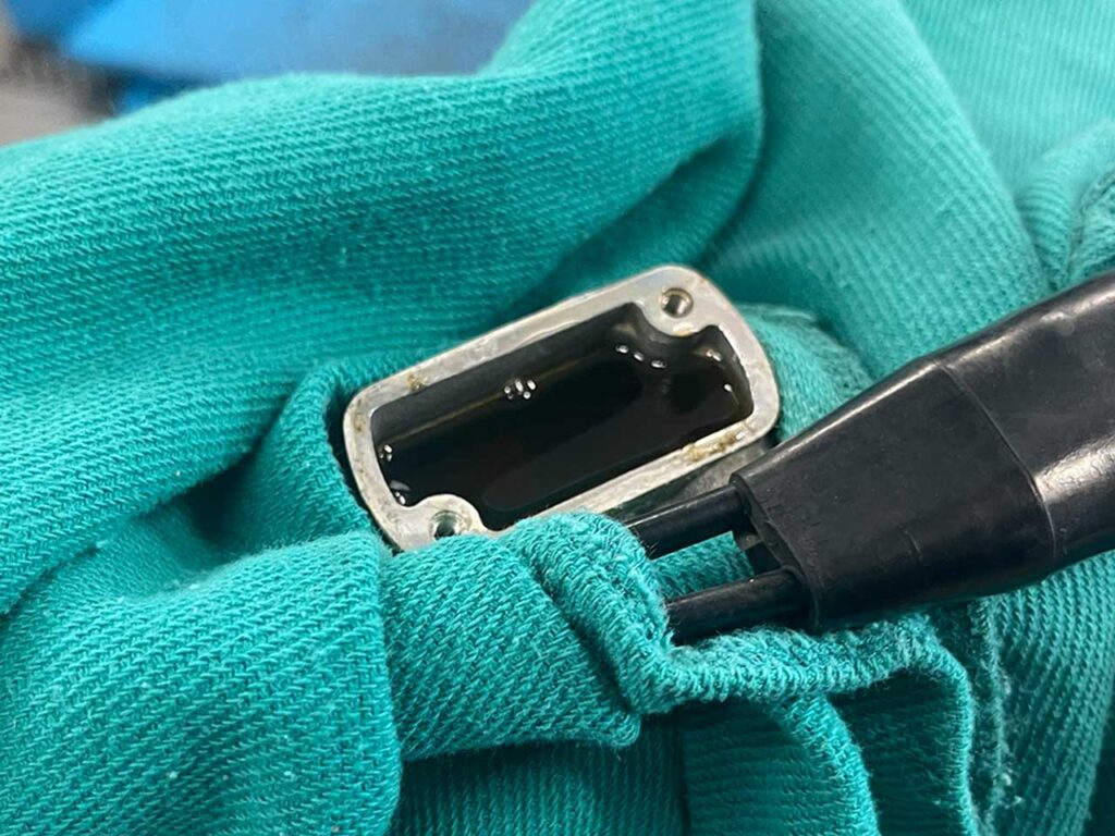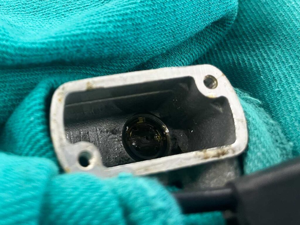 ボルトを緩め、ブレーキスイッチの配線を外せば、マスターシリンダーの取り外しが完了します。